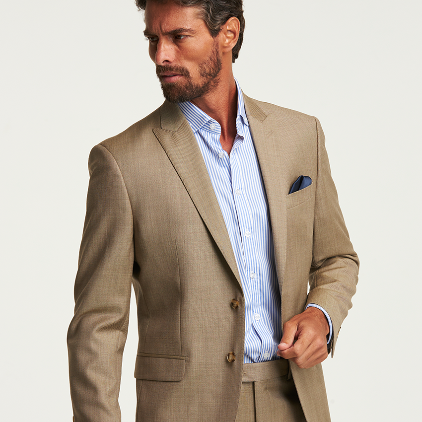 Elegância Clássica: Costume 100% Lã Super 120′ Bege para um Estilo Sofisticado