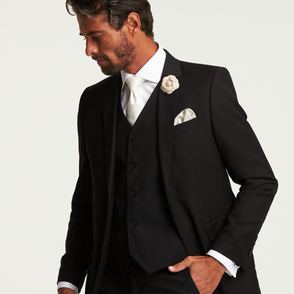 Elegância em Preto: Descubra o Traje de Poliviscose com Colete para uma Aparência Impecável!